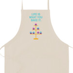 Aprons have an adjustable strap for a comfortable fit and a large pocket at the front. They are 100% cotton.